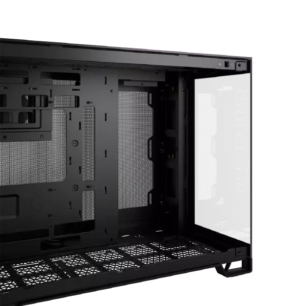 The Corsair 2500X Airflow M-ATX Mid-Tower Cabinet (Black) Series can house a powerhouse PC with an impressively small footprint. Ensure that your build is clean, organized, and well cooled in the primary chamber while hiding cable routing, storage drives, and your PSU in the second chamber.