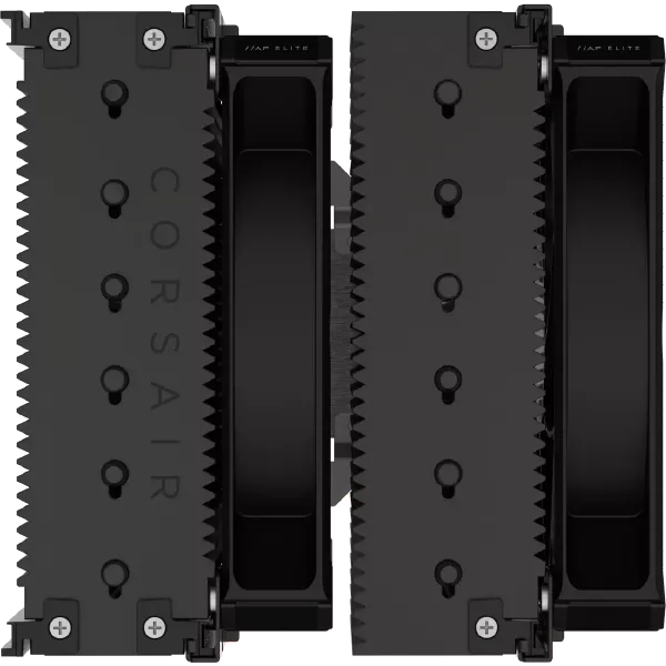 Corsair A115 Twin Tower 140mm CPU Air Cooler with two high-performance AF140 ELITE 140mm fans with CORSAIR AirGuide technology use anti-vortex vanes to direct airflow into a concentrated stream, providing more even airflow across the fin stack and supporting overall case airflow.
