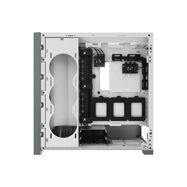 The 5000X RGB makes a stunning, showpiece-worthy PC easy to build and easier to keep cool with the space and flexibility to mount multiple 360mm radiators, all surrounded by beautiful tempered glass on four sides, The Corsair ICUE 5000X RGB Mid Tower Cabinet (White) is a mid-tower ATX case that shows off your PC, and not its cables. Four stunning tempered glass panels and three included CORSAIR SP RGB ELITE fans put your PC on display.