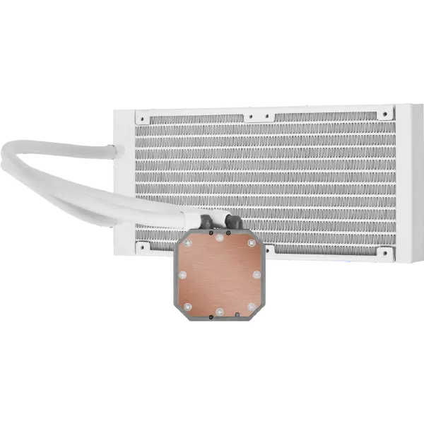 - A brilliant white finish on the pump cap, radiator, and fan housing reflects light for brighter lighting and fits right in with a modern white RGB build.