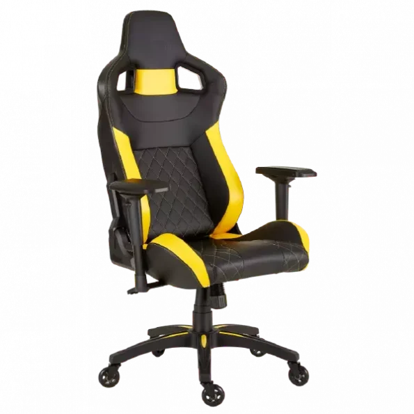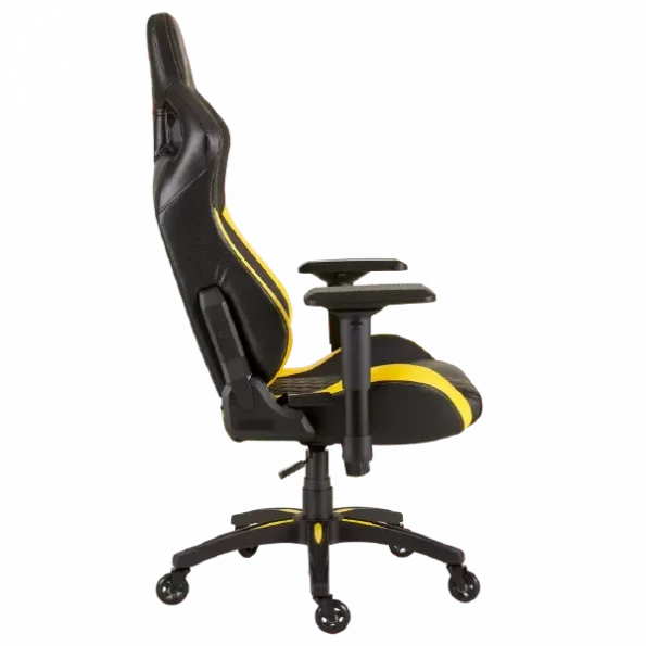 The Corsair T1 RACE 2018 Gaming Chair (Black/Yellow)8 chair features a wide seat, tall back, and two-layer custom color accents, giving you the style, comfort and endurance you need for long-haul gaming sessions.