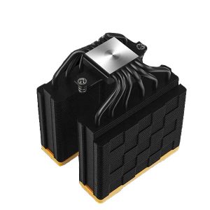 Deepcool AK620 Zero Dark Zoria 120mm CPU Air Cooler The same premium-quality materials, featuring six advanced copper heat pipes, a pure copper coldplate, a dense dual-tower heat sink, and two silent FDB fans, produce a powerful winning formula for high-performance cooling in a raven black and yellow aesthetic.