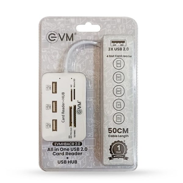 EVM All-in-One USB 2.0 Card Reader & 3-Port USB HUB – High-Speed Data Transfer, Smart Charging, Compatible with SD/MMC/Micro SD/MS PRO Duo/M2