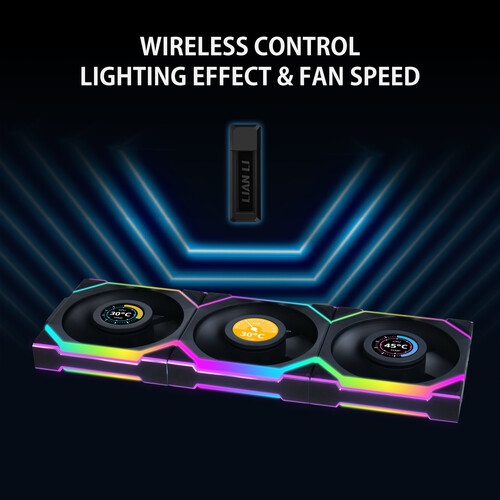The UNI FAN SL Wireless utilizes a 2.4 GHz wireless signal to control its lighting effects and fan speed, making management of multiple fans a breeze.