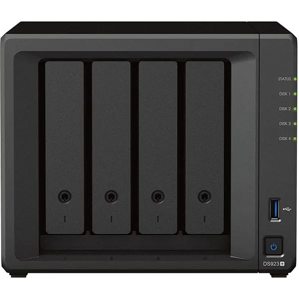 The 4-bay Synology DiskStation DS923+ is easy to scale and expand as your needs change, with optional support for up to 9 drives, 10GbE networking, and NVMe SSD caching. Powered by Synology DiskStation Manager (DSM), it offers a flexible all-in-one solution for data sharing, synchronization, backup, and surveillance.